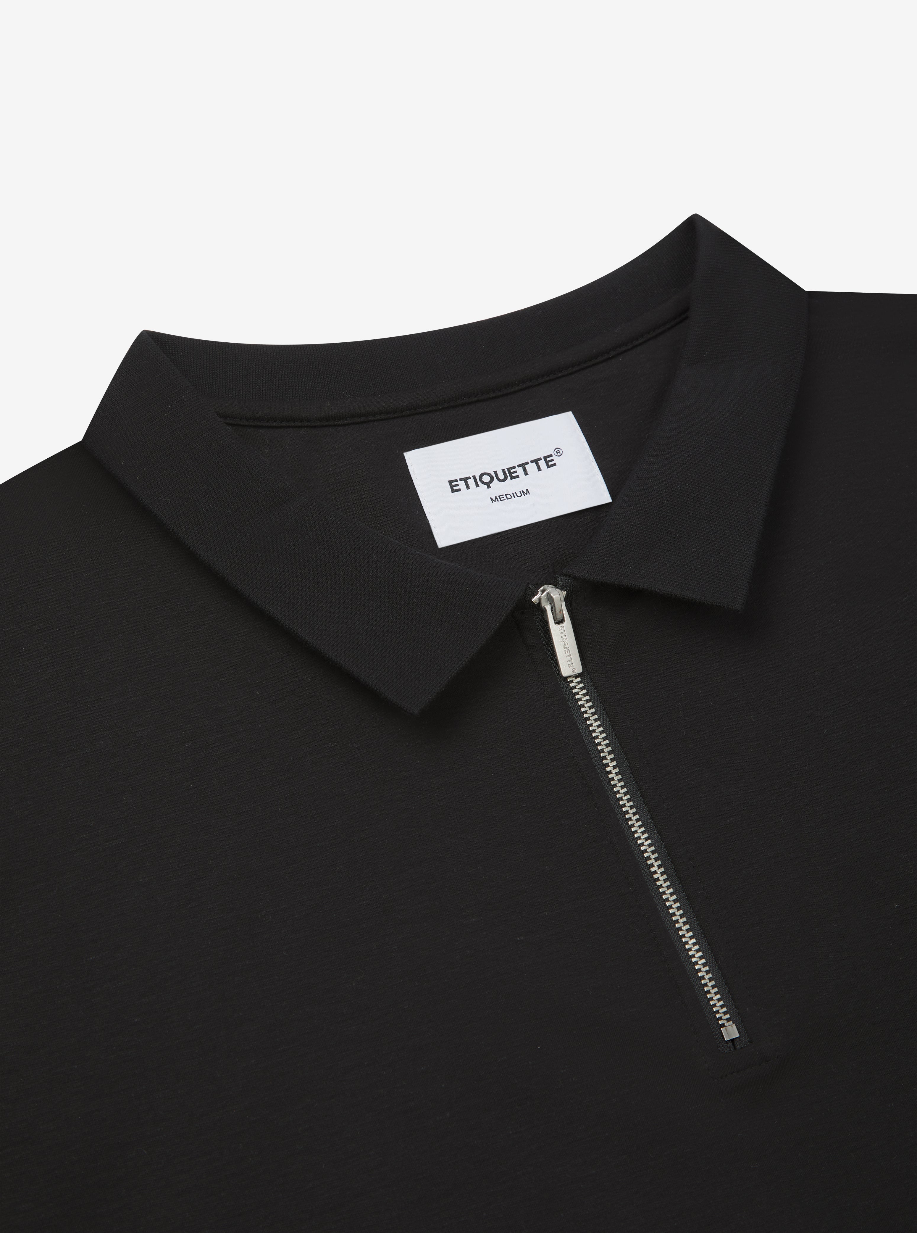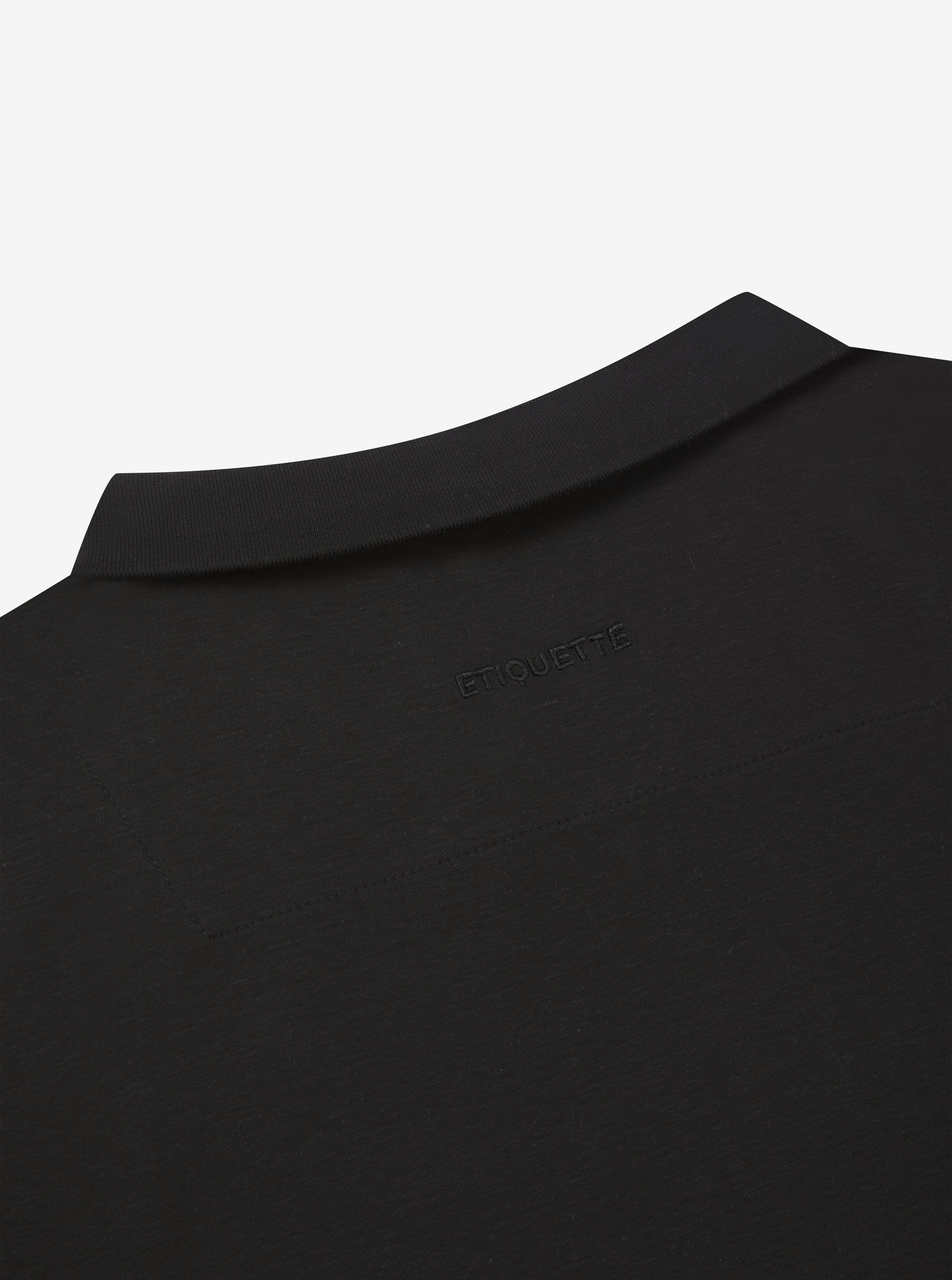 Pure Tencel Cotton Long Sleeve Polo - Black