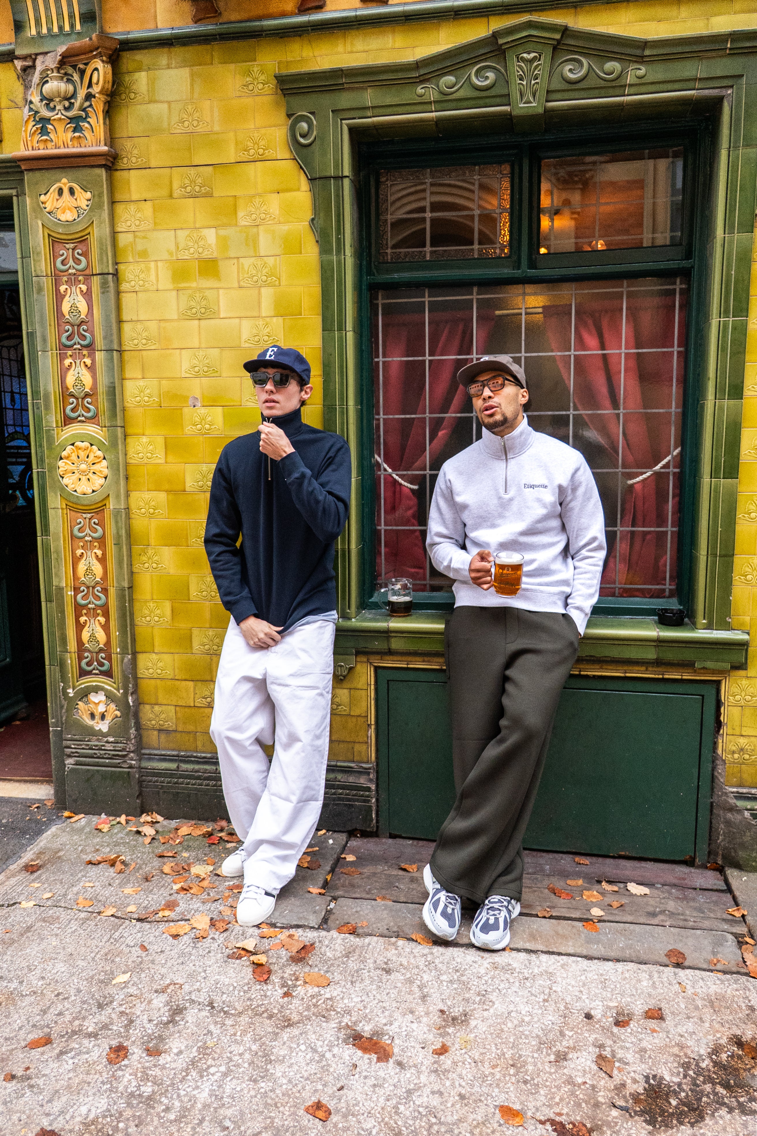 Isaac in Light Grey Heather is 6'2" and wears a L.